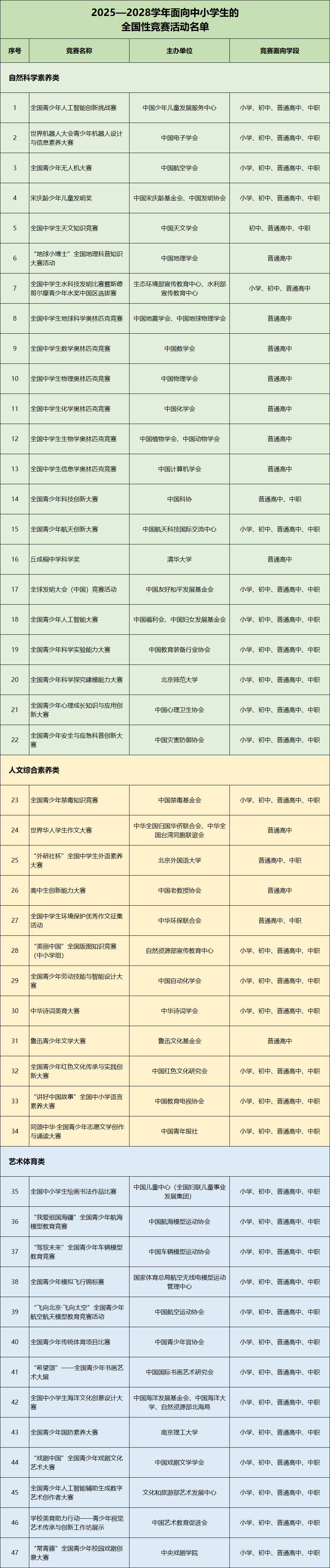 2025~2028学年中学学生全国性竞赛活动名单👇