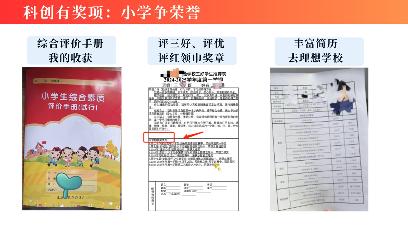走科创路线,拿到好奖项的孩子,综合评价手册有内容,三好评优有优势,申请理想学校保送的简历内容也更丰富了