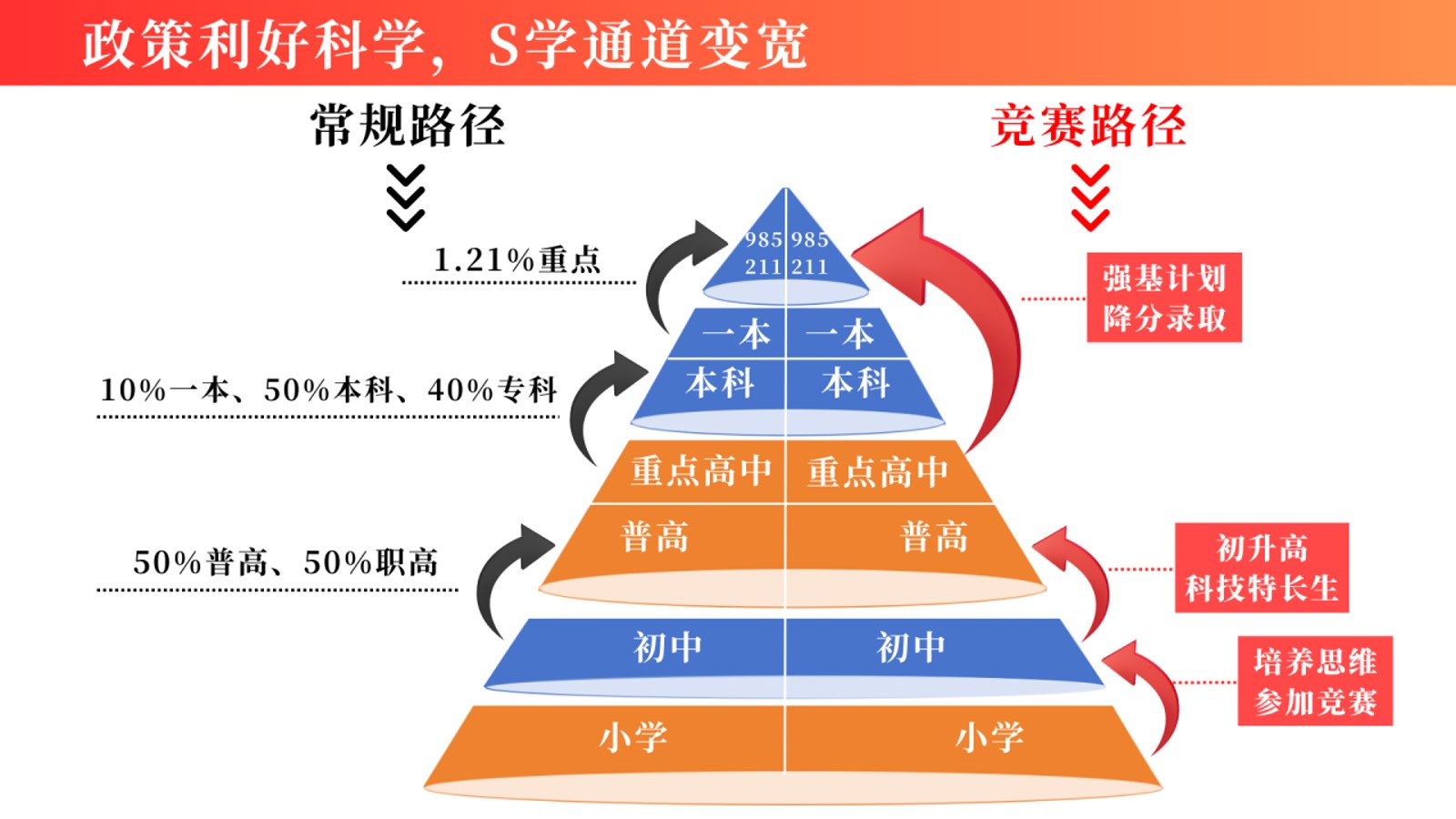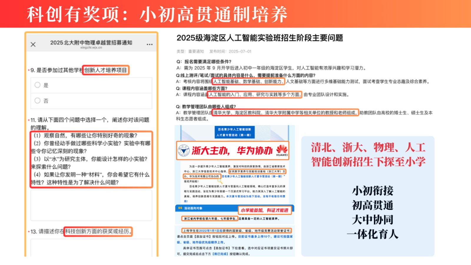 在抓住校内科学的同时,孩子还能抓住一条竞赛捷径,因为升学其实是有“潜规则”的,就是走科创特长的路子