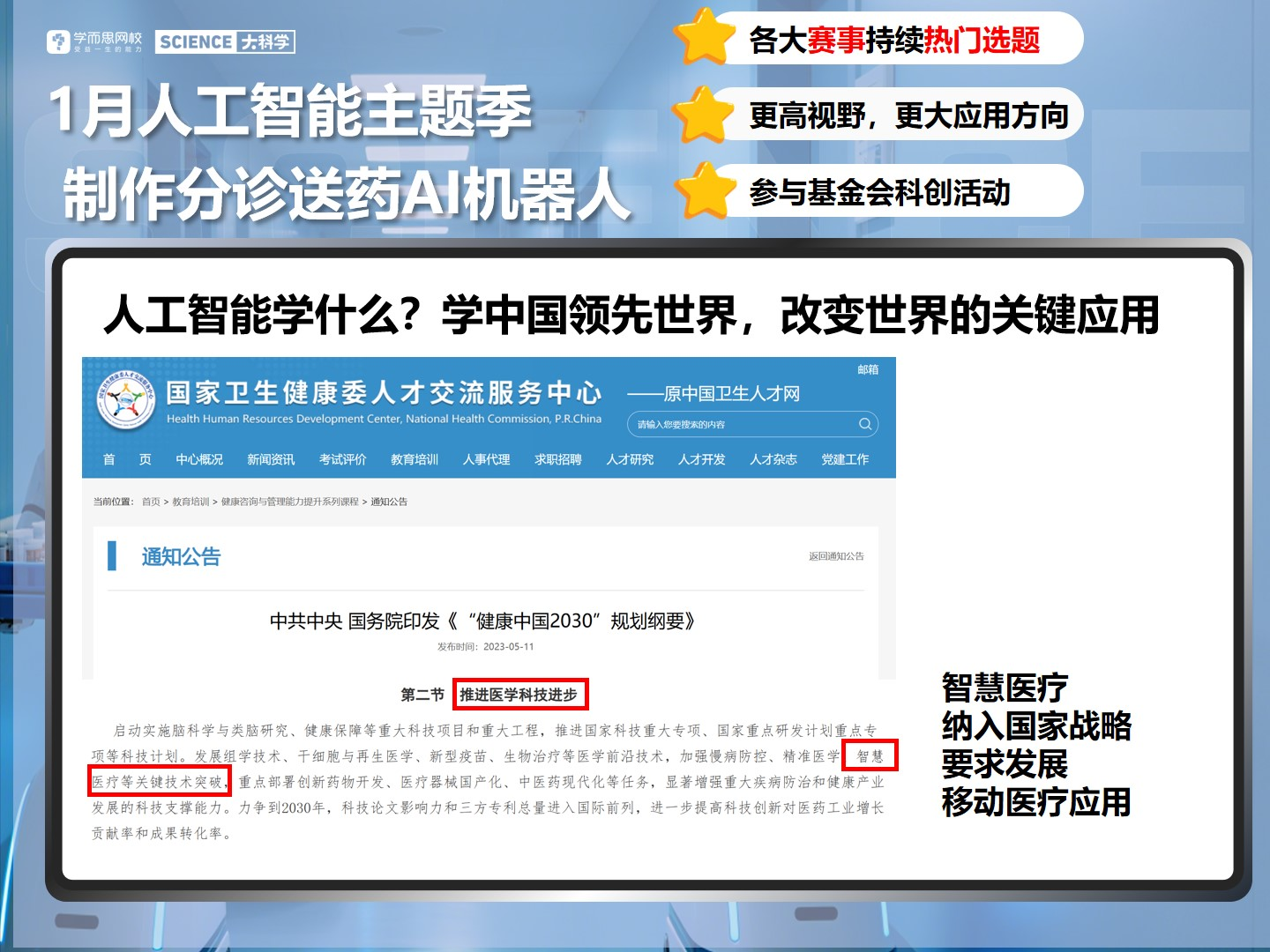 学习内容还贴合国务院的国家战略,智慧医疗和要求发展移动医疗应用,让孩子站在国家前沿学科学!