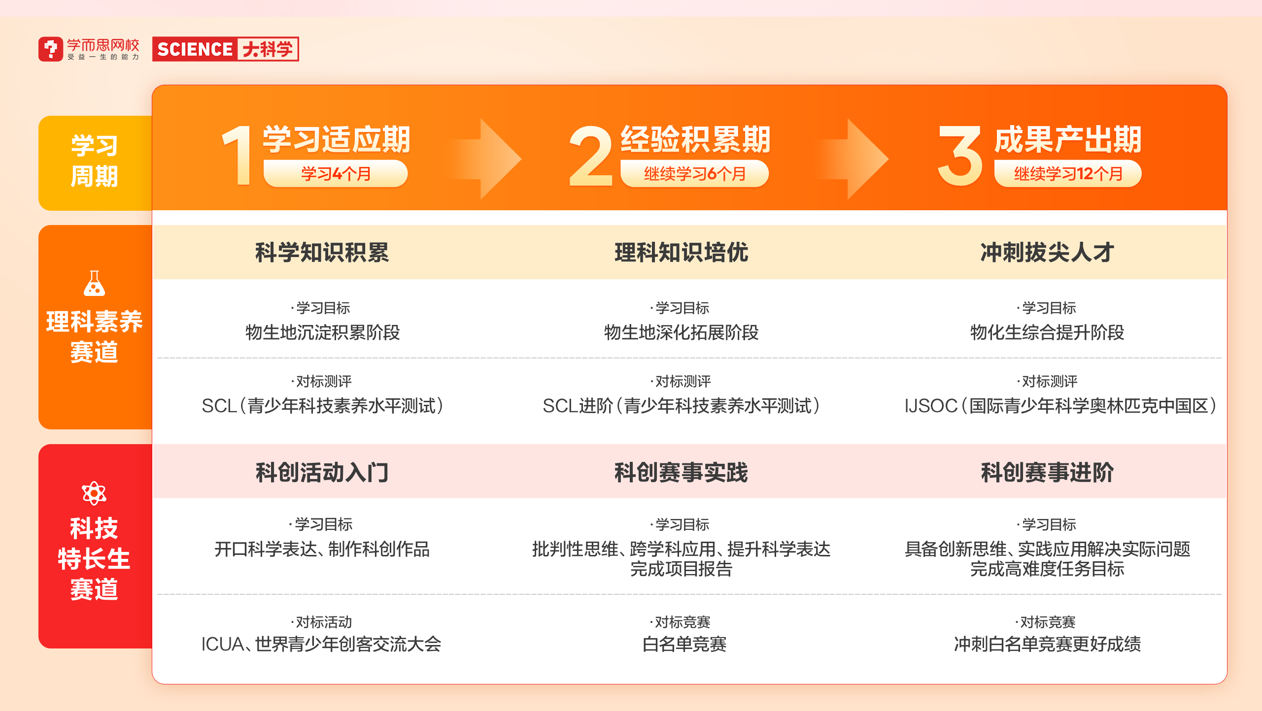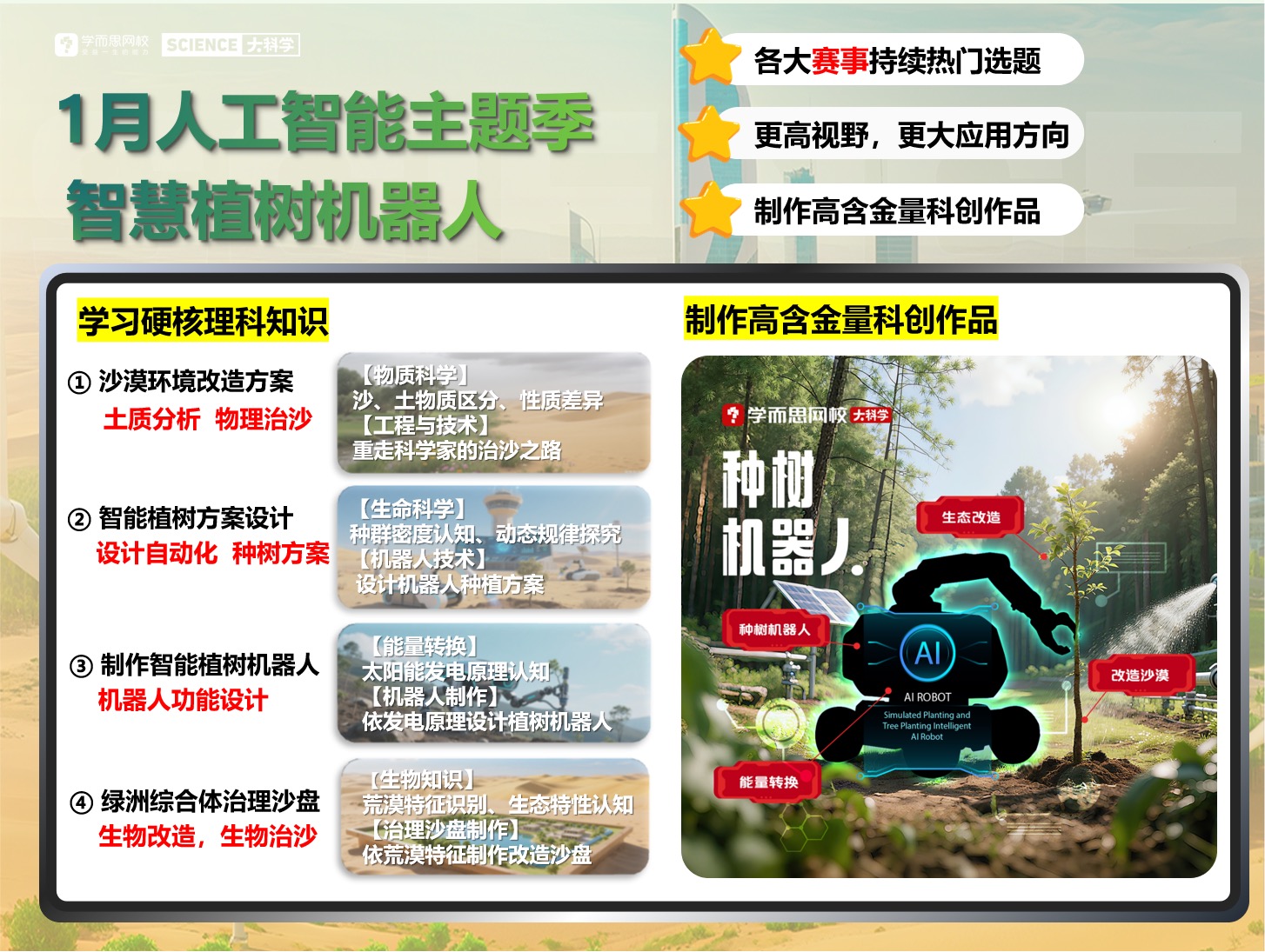 🌟这次的白名单赛事机会是非常难得的人工智能赛道【主题】,科学课课表内容也完美贴合赛事主题展开,每个阶段都有对应的主题内容,学而思还会提供备赛攻略,提高大家的通过成功率!!
