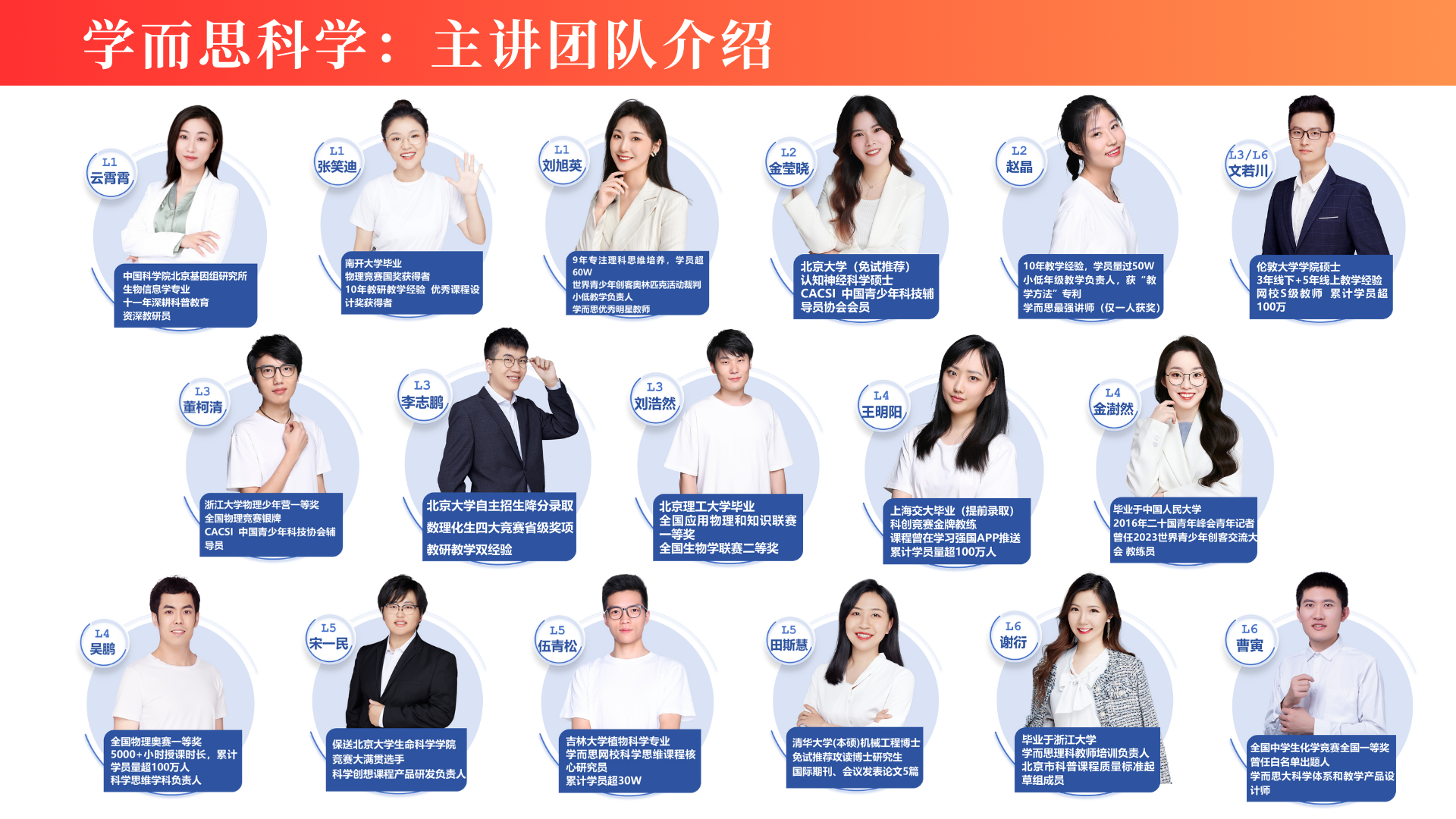除了授课老师优秀,学而思还有强大的教研团队,清一色名校毕业,基本上都有10年以上的教学教研经验,一线经验也十分充足,这样的师资团队,放眼国内绝对是天花板级别,孩子跟着“学霸老师”学科学,跟着学霸的方法理解科学,潜移默化成为小学霸