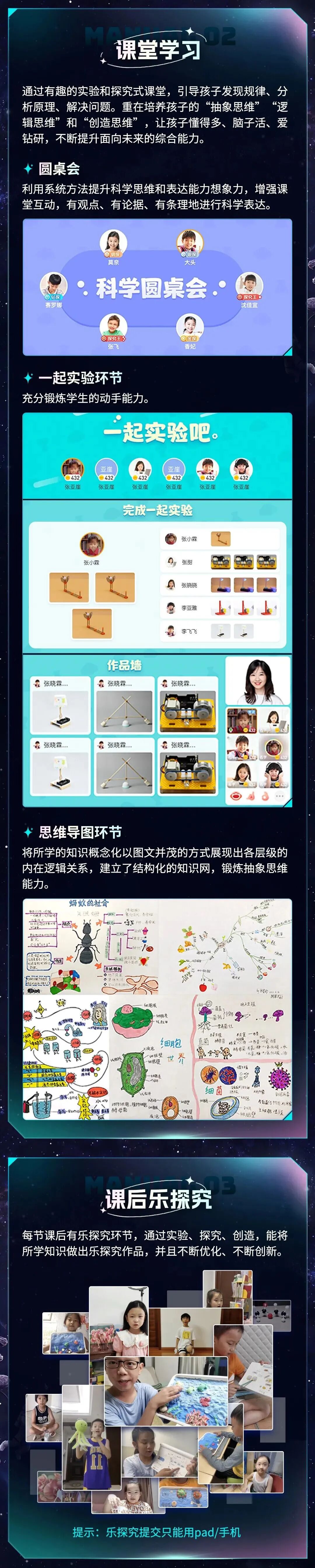 ● 五年级以上:开始学习初中的规律、定律和公式,还会进行实际场景的应用创新,不仅要关注逻辑推理、假设和验证自己的想法,更要会输出文字形式的调查结果,争做小小科学家