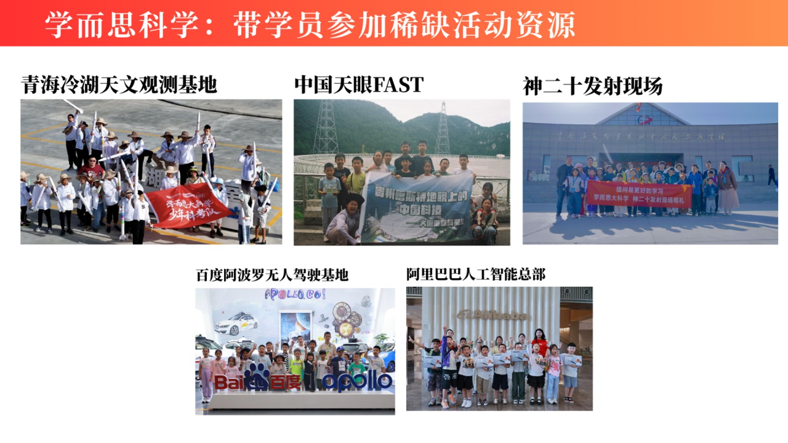 为了满足孩子的科学好奇心与学习热情,还会不定时组织学员参加各种稀缺活动,天文观测、神舟发射、中国天眼,学而思的研学也是行业顶尖!