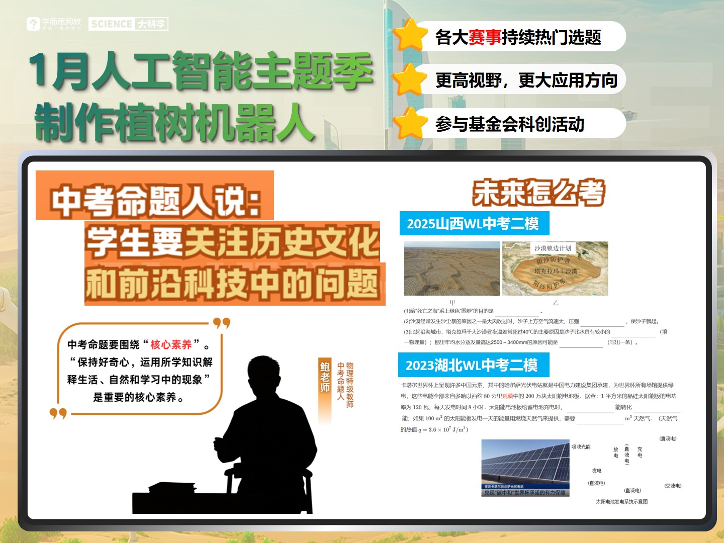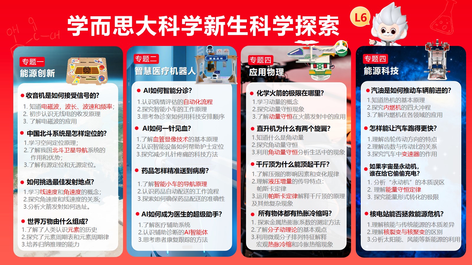 六年级和七年级的孩子学习的内容是一样的,能源创新、人工智能、应用物理、能源科技,四大高精尖主题,帮助孩子站稳初中科学