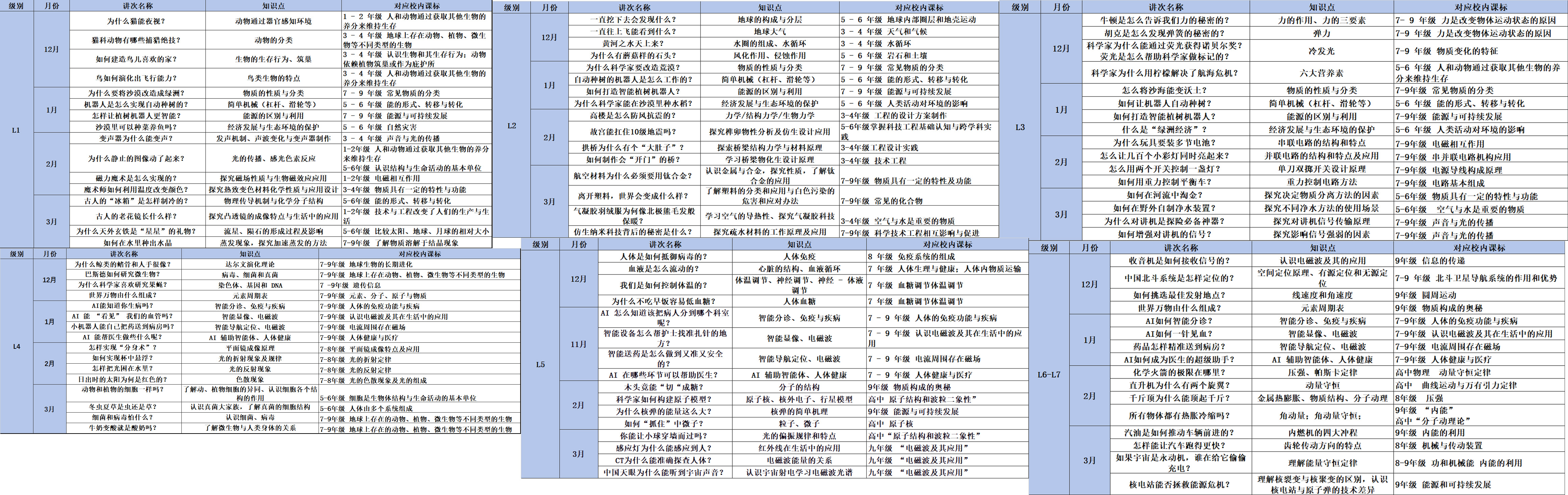 ②课程体系围绕中小学高频考点,L1-L7 ,科学进阶,内容涵盖物理、化学、生物、地理四大专题,跟初高中理科强挂钩,为中高考做准备,为应试教育做准备
