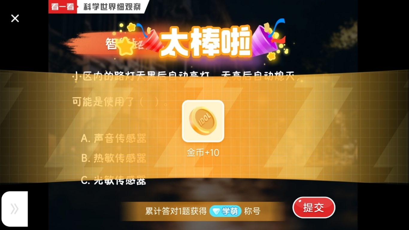 答对题目后还会有丰富有趣的激励体系,给孩子金币和称号奖励,让孩子爱上学习