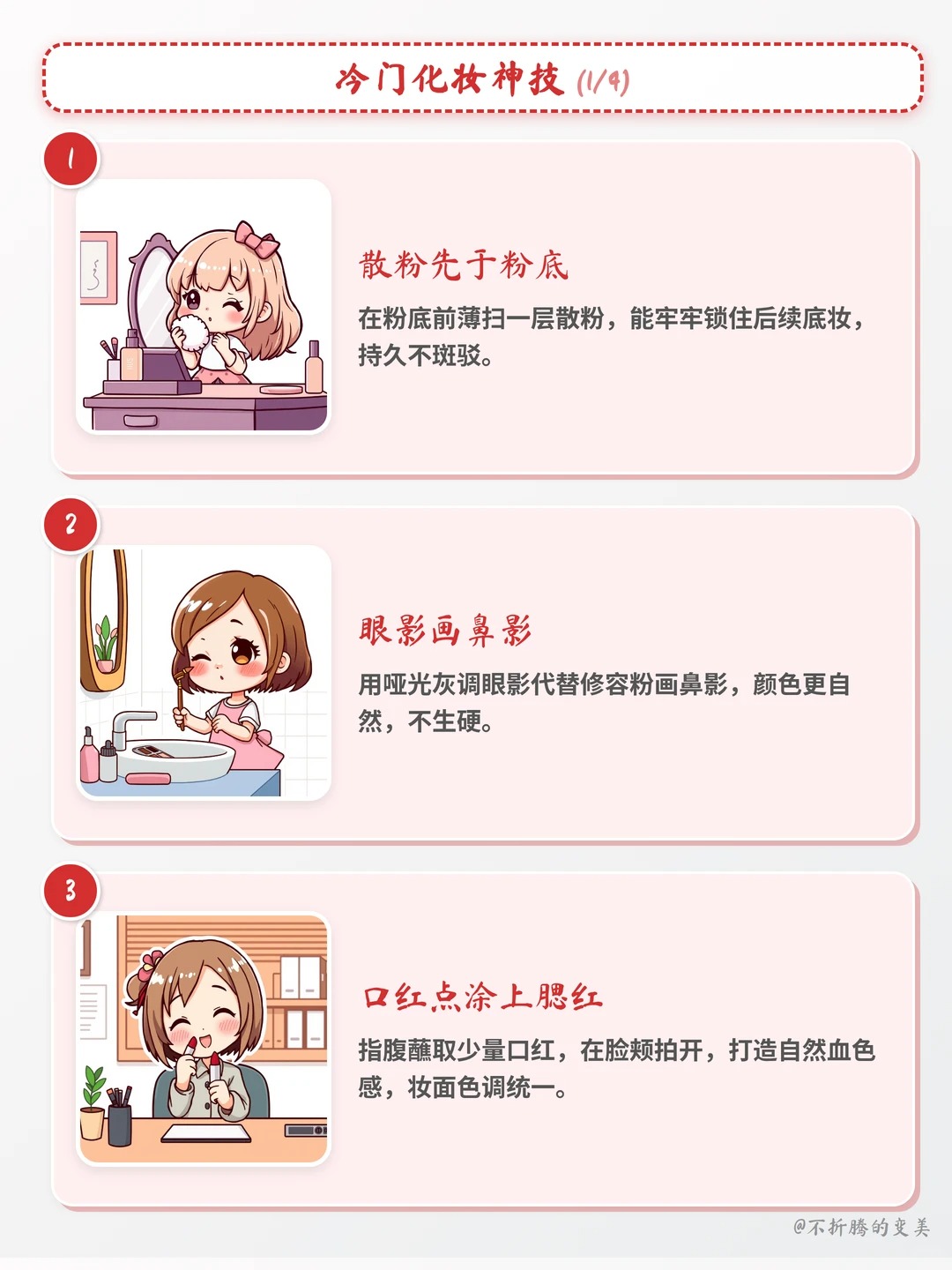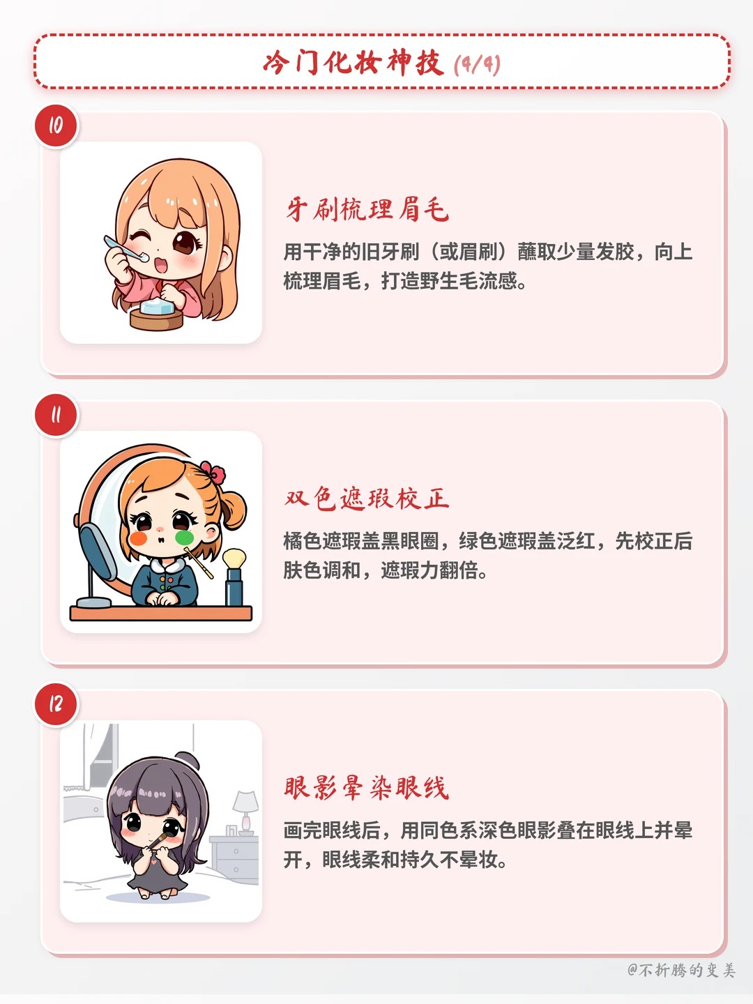 是不是总觉得化妆步骤都对,但效果就是差口气?今天分享12个超实用的冷门技巧,帮你把妆效拉到满格!💪