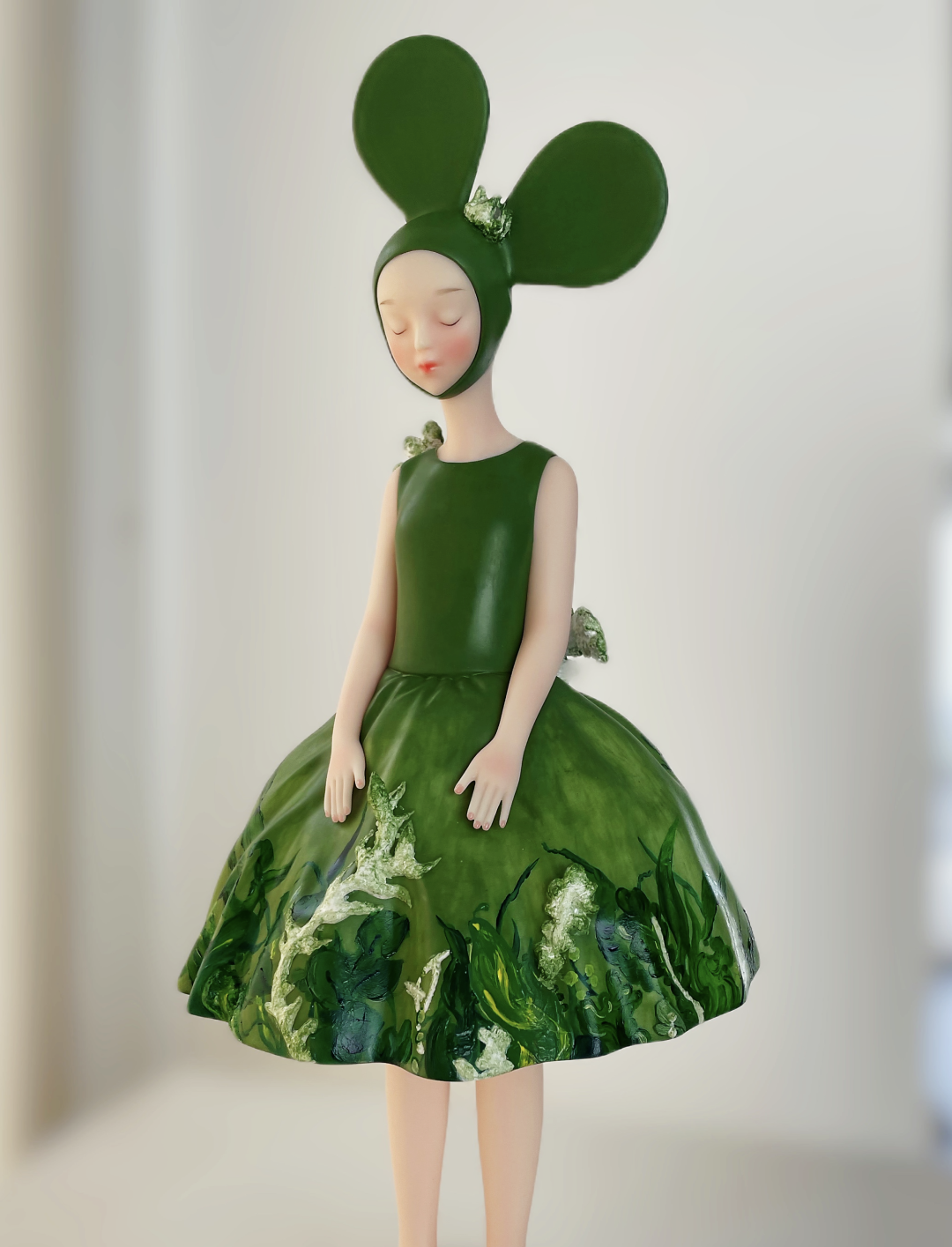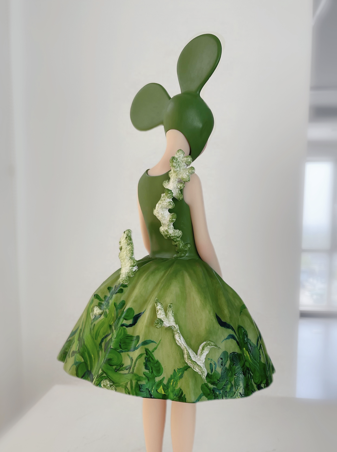 创作思路:“然女孩———无限♾️”:在人们对生命的热爱和认知上,植物不断给予提示。裙摆上的植物代表了不受阻碍向上生长的力量,顽强和坚韧的、不断更新的生命力。头顶的种子是希望的象征,使得生命无限循环繁衍。