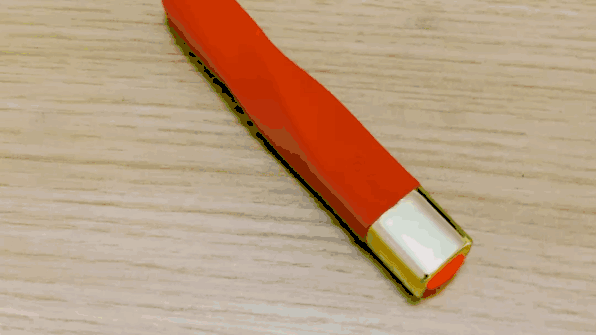 这个口红的充电方式也是很有新意,是磁吸式充电,在尾部可以找到两个银色的小圆点,那就是充电处啦,把充电线对准那里就可以自动吸住,充电时尾部的灯会闪烁,等不闪了就代表充好电啦。