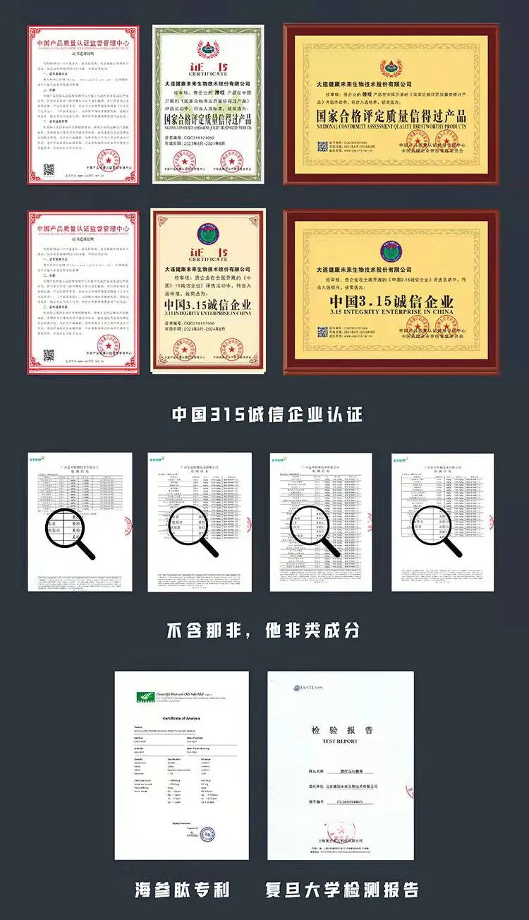全程采用医药级标准生产,铝塑无菌包装,出厂10000人试用,90项检测合格。