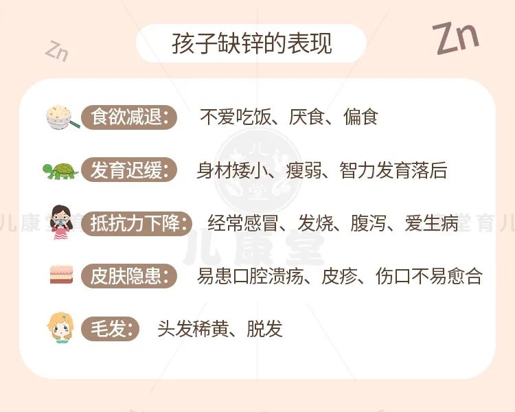 "孩子不爱吃饭,补锌是关键~",六师妹至今都对童年的这个补锌广告印象深刻。锌又叫做"生命之花"、"智力之源",对于促进智力发育、维持正常食欲、增强免疫力....各方面发挥着四两拨千斤的作用。宝宝是缺锌的高发人群,据世卫组织统计,3个孩子里面就有1个缺锌。如宝宝出汗,体内的锌元素会随汗液流失。孩子不爱吃饭,也会让锌得不到充分的补充。或者脾胃虚,补的锌吸收不了...有的宝妈会说:"那我怎么知道我家娃是不是缺锌?",先看看孩子有没有这些症状表现:如果宝宝有2~3个甚至更多的症状,就要考虑缺锌的情况。日常生活中,锌含量丰富的食物可不少。平时给孩子吃得也挺营养的,荤素搭配,怎么就钙也缺、铁也缺、锌也缺呢? 其实最关键的一点,便是吃进去的钙铁锌,孩子不吸收!不管通过什么方法来补营养,最终的一点,就是要让孩子充分吸收。但很多时候,孩子都是补了个寂寞。拿补钙来说,一些钙片产品宣称自家的比其他钙片吸收更好,高达90%,但事实上,再好的钙片吸收率也不过30%~40%。因为吃进去≠补进去,吸收差是因为体内有"淤堵"。