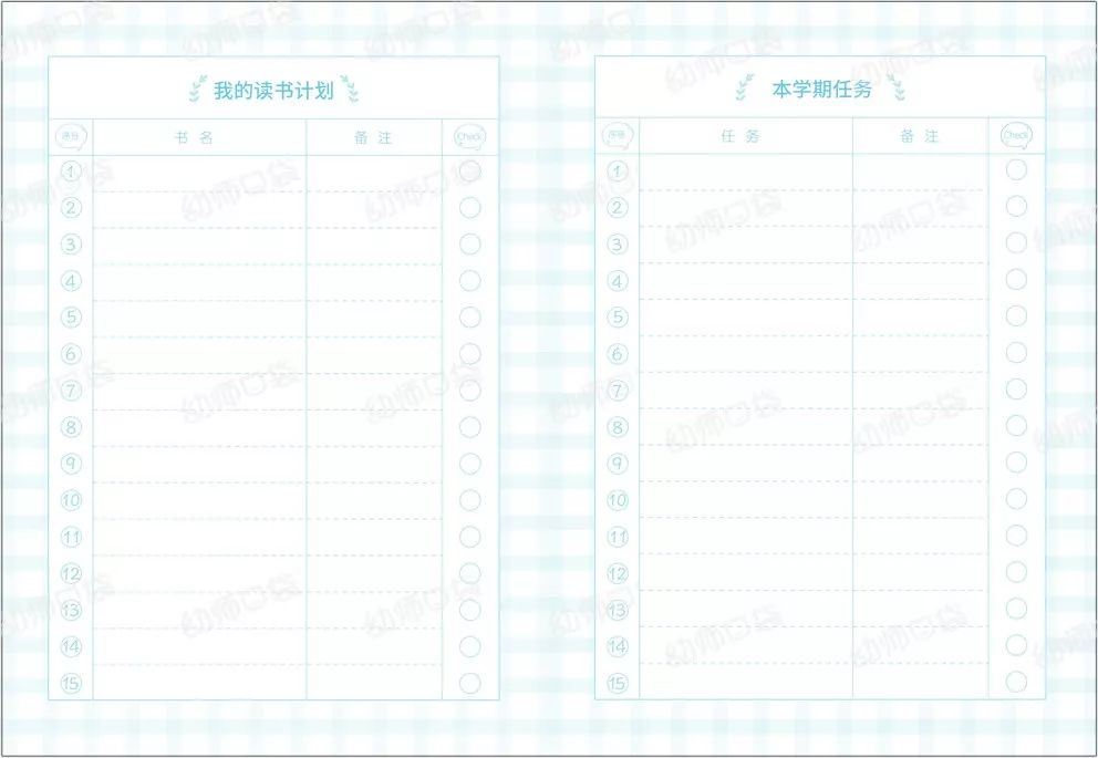读书计划+学期任务表格,除了能记录学期重要任务和想读的书,还有备注与完成勾选功能。