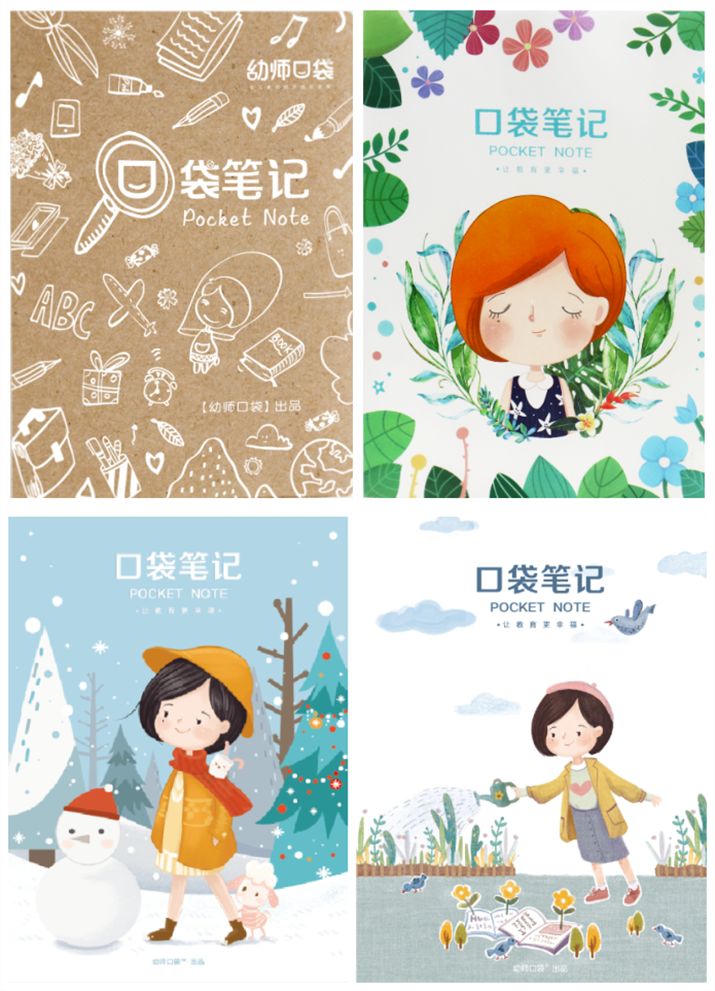 这分别是四版口袋笔记的封面,每次推出都受到幼师和园长们的喜爱!