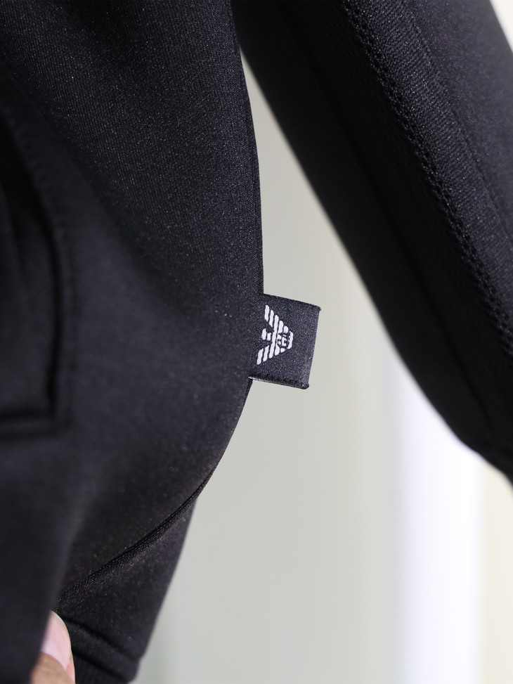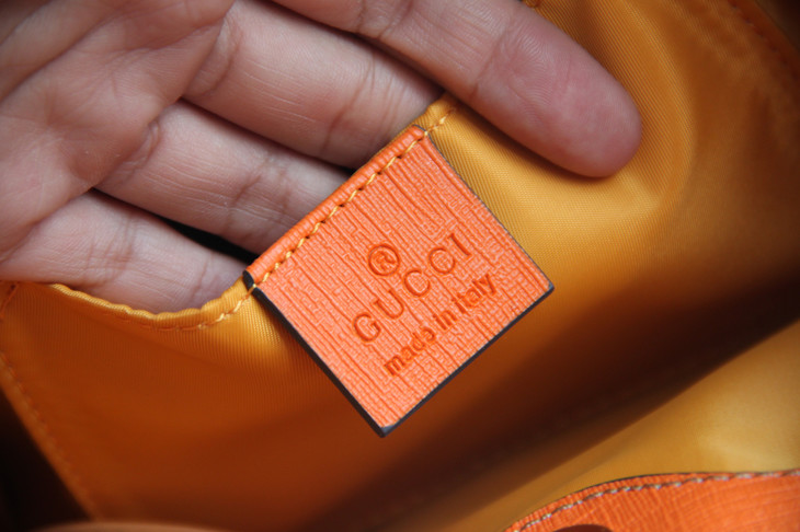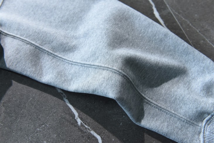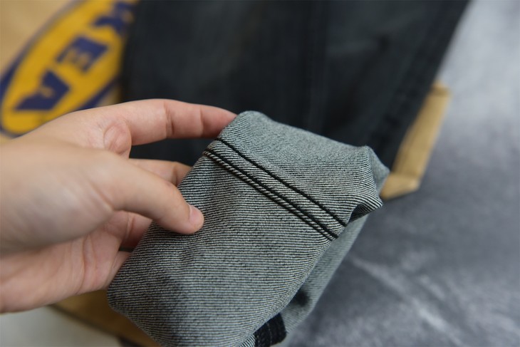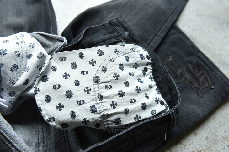 裤腿前侧和屁股都有LOGO的皮标缝制