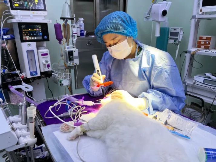 优秀的人才总会被争抢,是金子,总会发光。2013年硕士毕业时,唐医生成功留在中国农业大学动物医院的手术中心工作,作为中国农业大学动物医院第一批住院医师之一,发展软组织外科。自此,长达10年的时间,始终在手术中心工作。在医院的培养、老师和同门的指导帮助下,从最简单的绝育手术开始,到复杂的肿瘤切除、胃肠道手术、肝胆手术、泌尿道外科、耳道手术等逐一攻破,积累大量病例经验,每一年都会收获新技能,外科技术更加精炼。