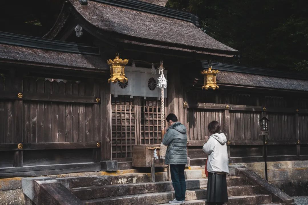 整理仪容,进入鸟居前深深鞠躬,以示对神明的尊敬。
