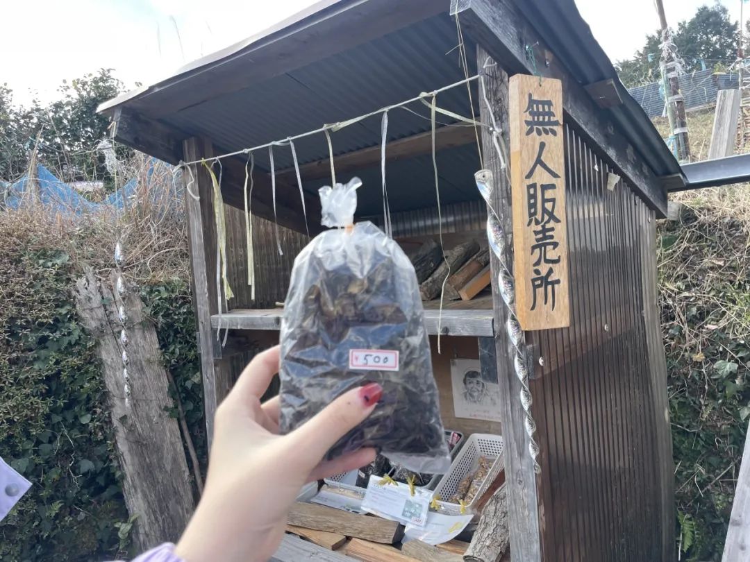 从五大王子社之一的发心门王子开始,便进入熊野本宫大社的参拜道,沿着水泥路经过三两村庄,村里没什么人,沿途有一些全靠信任驱使的无人贩卖亭。折合人民币25元能买到一袋当地产的茶叶,我们这群徒步的人争先恐后地买起了茶叶。