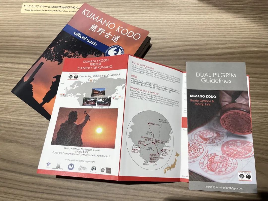 相比于春节期间到处都是中国人的大阪都市,这个纪伊半岛西南岸、尚未迎来观光旺季的的海边小城,冷清又安静,几乎没什么游客,也甚少见到中国人。车站旁是田边市熊野观光局,里面放置的熊野古道地图和印章册供徒步朝圣者免费领取。