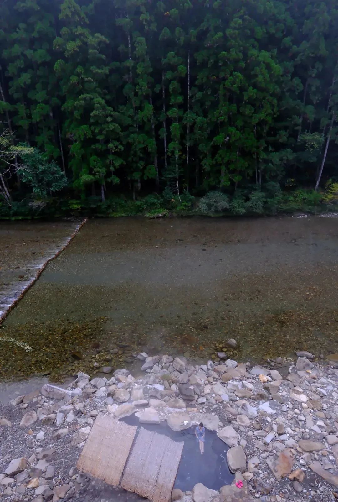熊野古道行程的四个晚上中,有两个晚上都能泡到温泉,甚至是露天温泉。川汤温泉临着河面对着森林,天气好的时候,可以在温泉氤氲中看日出日落,但拒绝了队员的邀约,我选择先做完工作再去泡温泉。