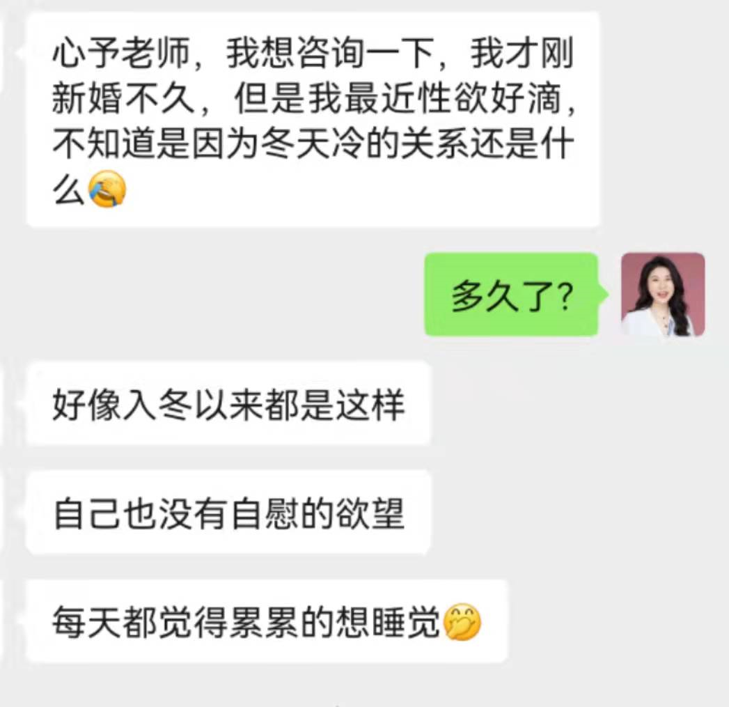 有姑娘反应,哪怕新婚燕尔,入冬后也明显提不起兴趣,紫薇的欲望都没有了。(哈哈 是不是以后结婚要考虑到这方面,选在春夏更有激情?)