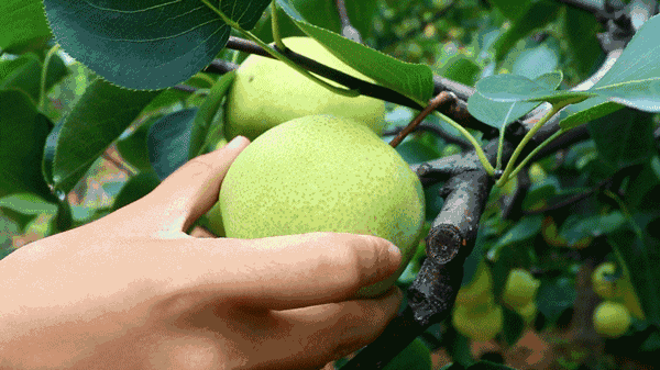 梨子美,则是美在它长熟挂在树上的沉甸;是摘下握住感受到的饱满;是张嘴咬开品尝到的香甜。