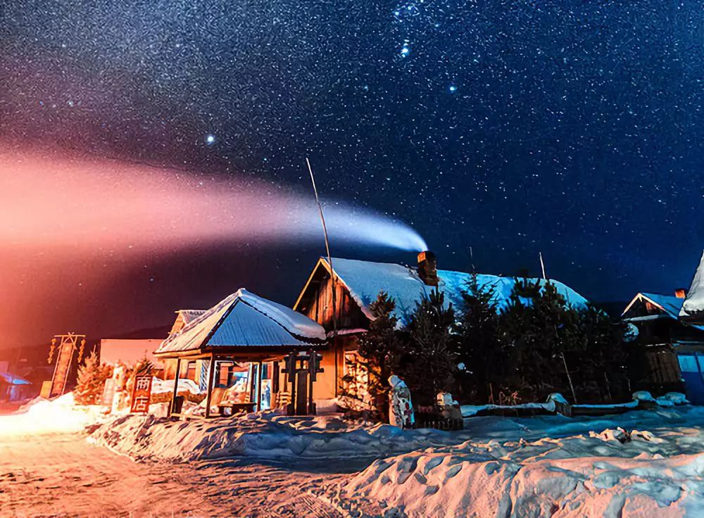 夜间村庄里人们烧火取暖,烟雾从烟囱中缓缓飘出,与璀璨星空光影相交相融,在我看来也是不输极光的梦幻。