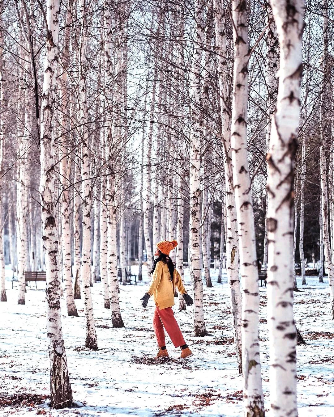 在漠河,野生的白桦林广泛分布,超过了森林面积的20%。它们笔直、洁白,与冰天雪地融为一体。穿上色彩明朗的衣服,随手就是一张北欧风大片。