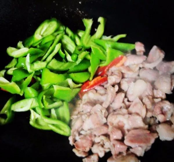 猪颈肉3两,五花肉2两,尖椒半斤;