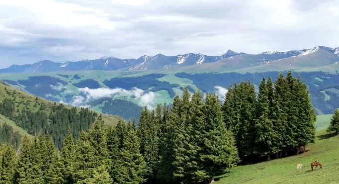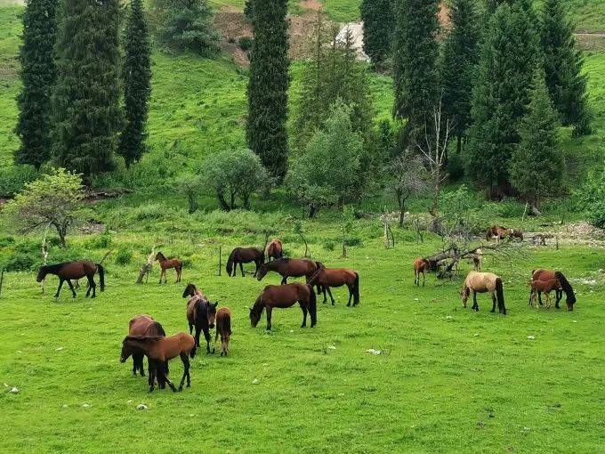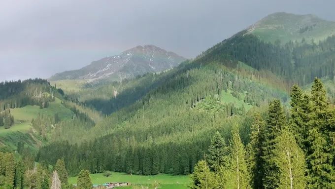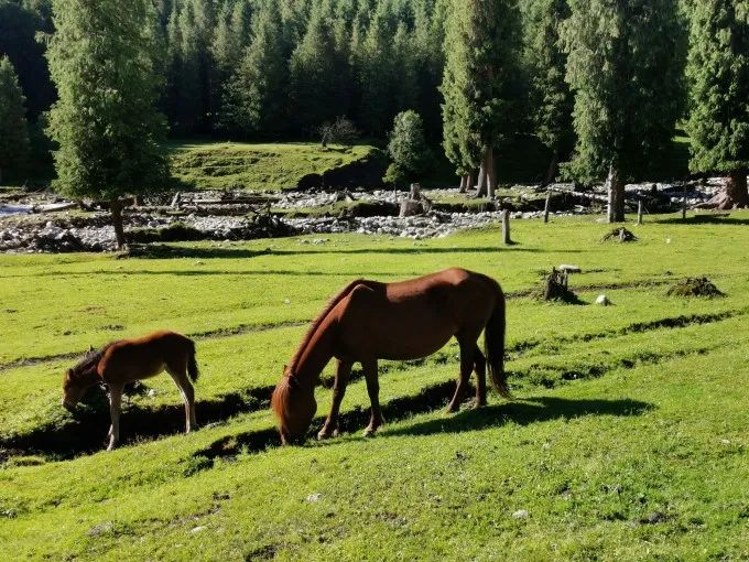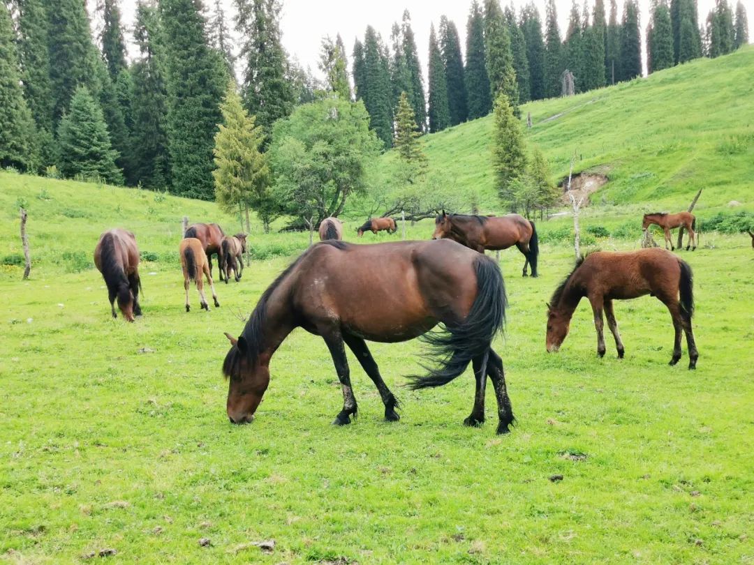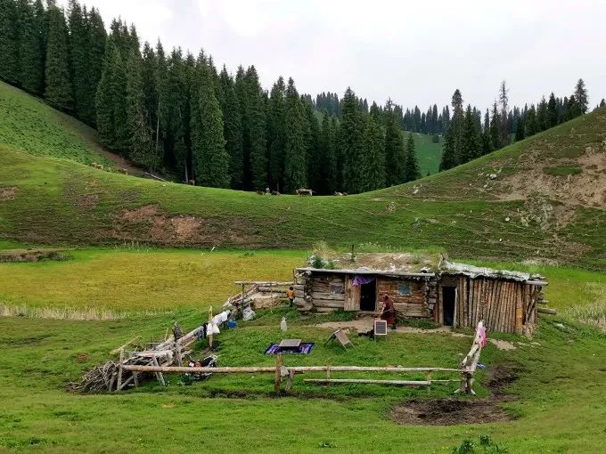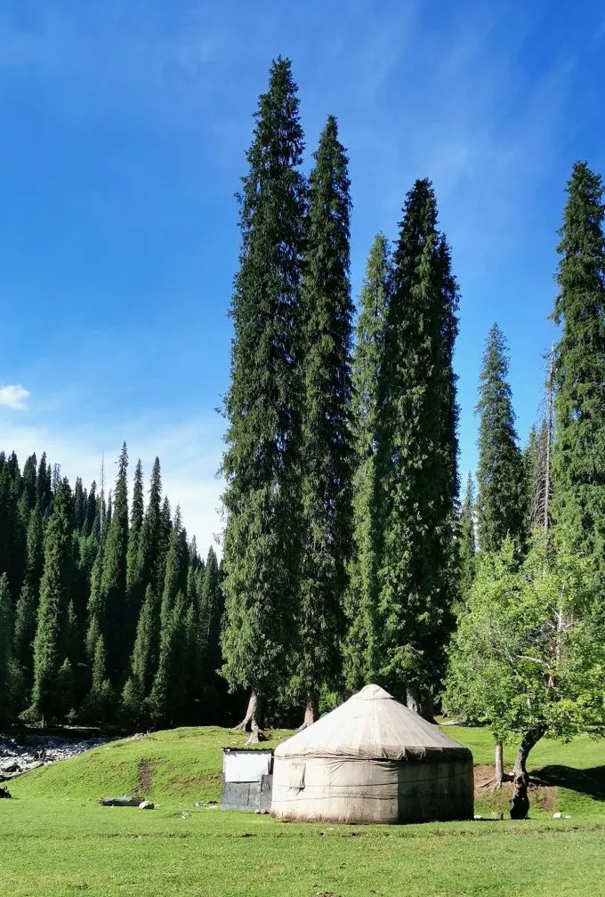 下午5点多,到达琼库什台村,入住云杉环绕中的虹桥客栈