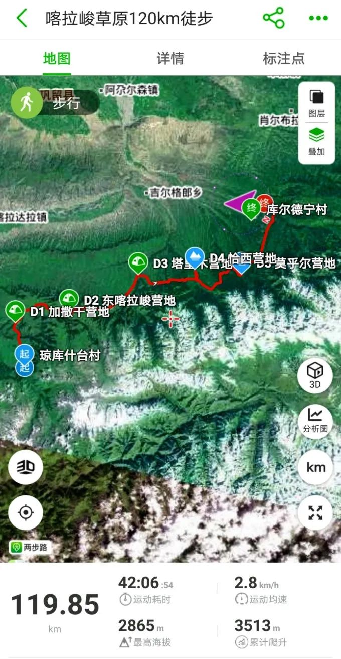 这一天我们将从莫呼尔营地(海拔 2450 米)走到 库尔 德宁村,全程约 11.3 公里。