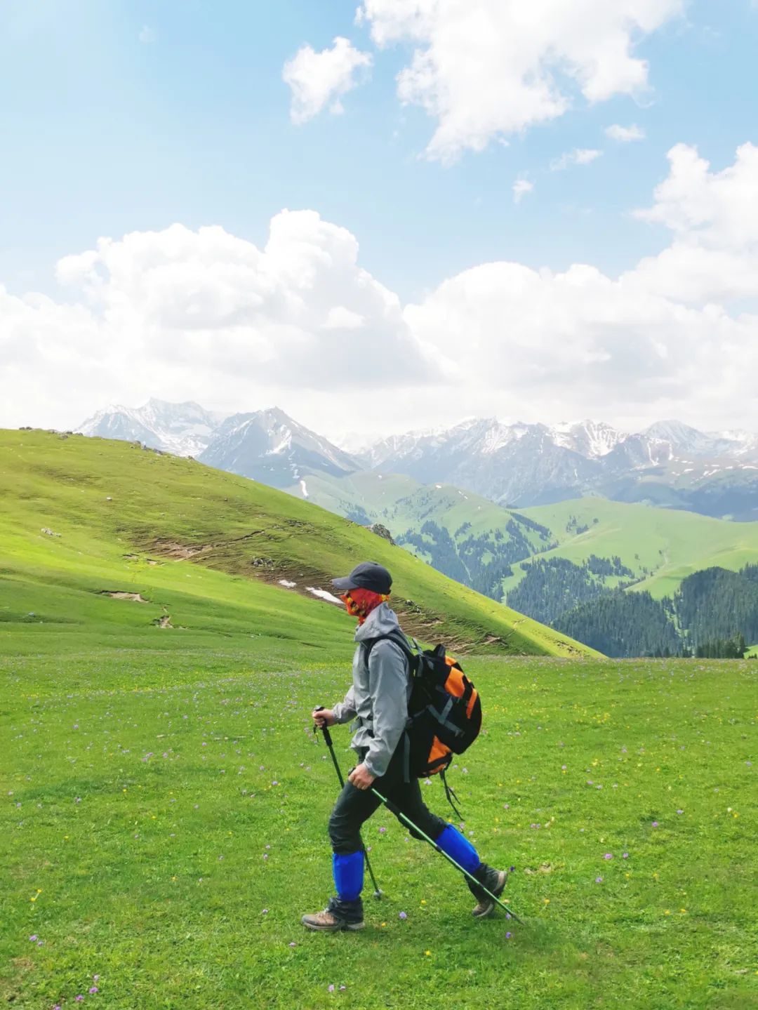 作为一个徒步小白,首先遭受的挑战不是线路的强度,而是行程的 8 天无法洗澡。对于一个有轻微洁癖,即便是在海拔 5000 米的阿里中北线自驾也要每天洗澡的南方人来说,无疑是个极大的挑战,但喀拉峻大草原的无边草甸、五色花海、花斑森林和巍峨雪岭,最终让我战胜了内心的恐惧,毅然加入了这次徒步之旅。