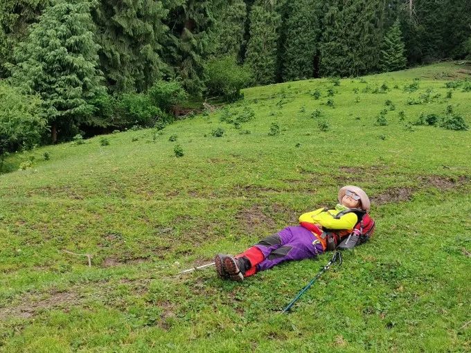 走到这一天,大家或多或少都有些疲惫,很多人的脚底都打起了水泡,一位来自山东临沂的大哥膝盖伤痛,不得不搭车前往莫呼尔营地——幸好恰西营地有公路,车辆可以通行。其他 22 位队友则继续坚持徒步前行。