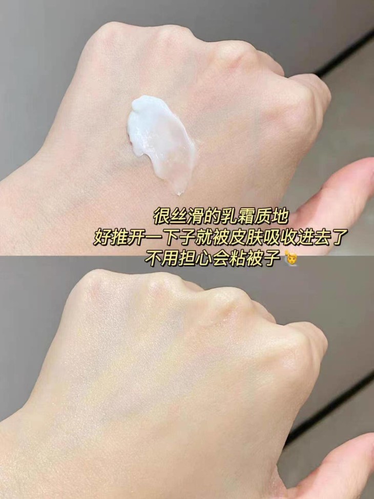 质地润而不腻,轻轻一抹就能推开,涂在身上很快就被吸收了,完全不会有黏糊糊的感觉👍