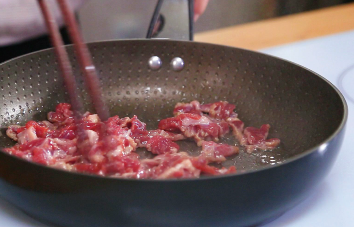 1、热锅凉油,油热后关火,将肉丝入锅,开火,用筷子迅速划散开,待其变白盛出备用;