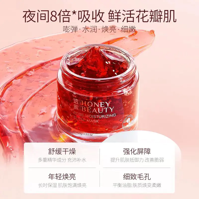 🉑晚上洁面,涂爽肤水后,薄涂一层玫瑰睡眠面膜(免洗)第二天皮肤水润透亮