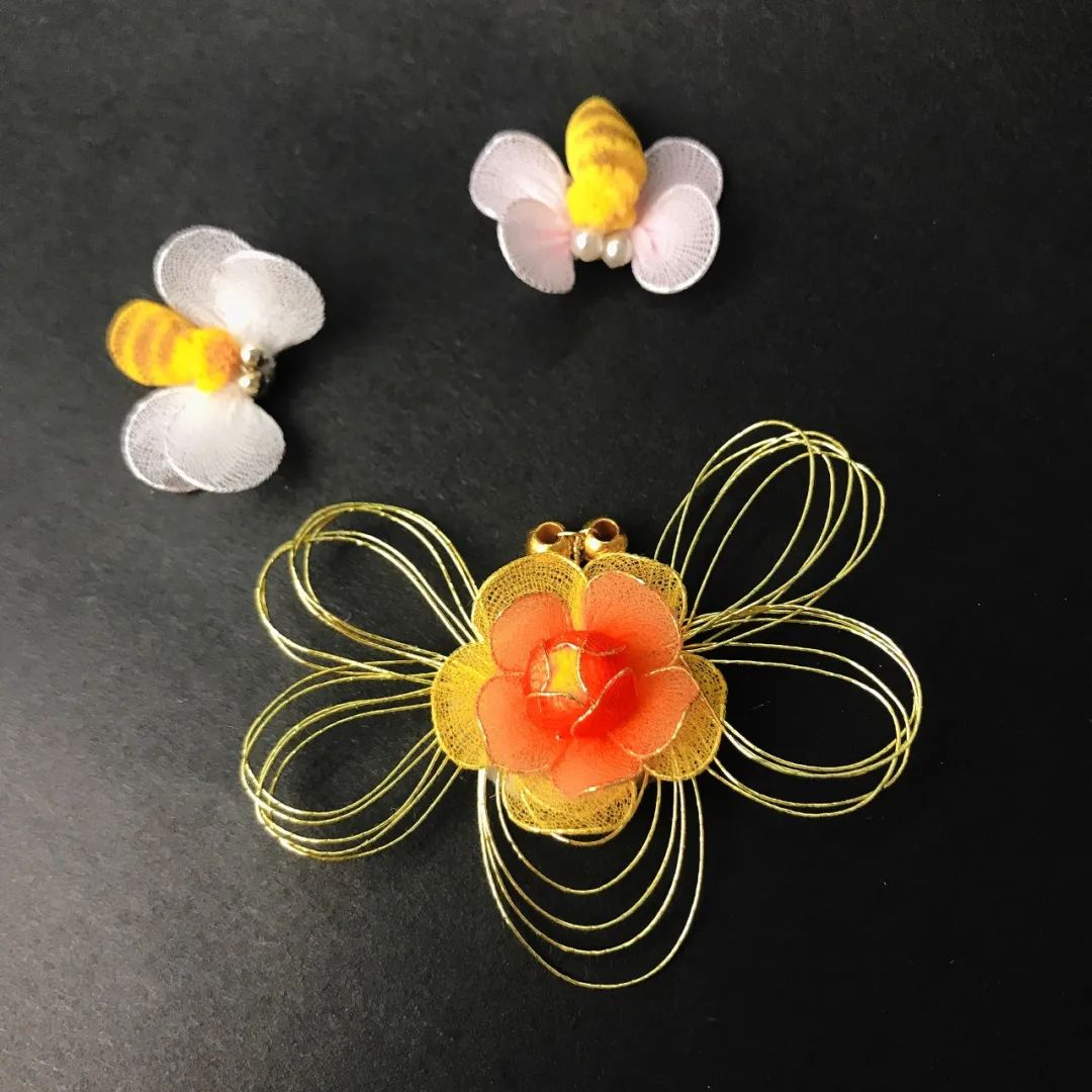 翅膀部分采用的工艺技法是一种难度较大的多连环绕圈技法。