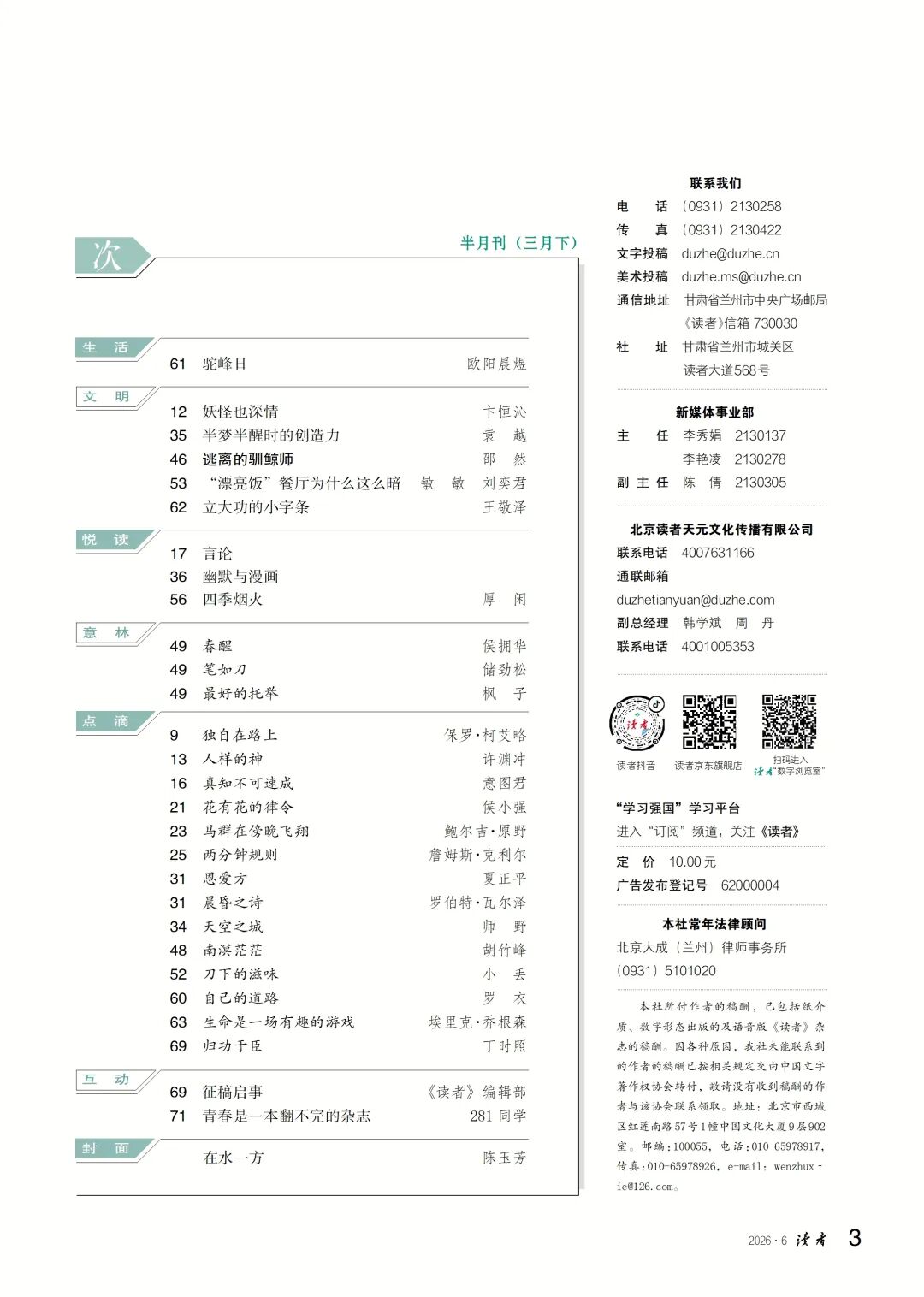 2026年第6期《读者》,已在这样一个充满生机的时节如约而至。