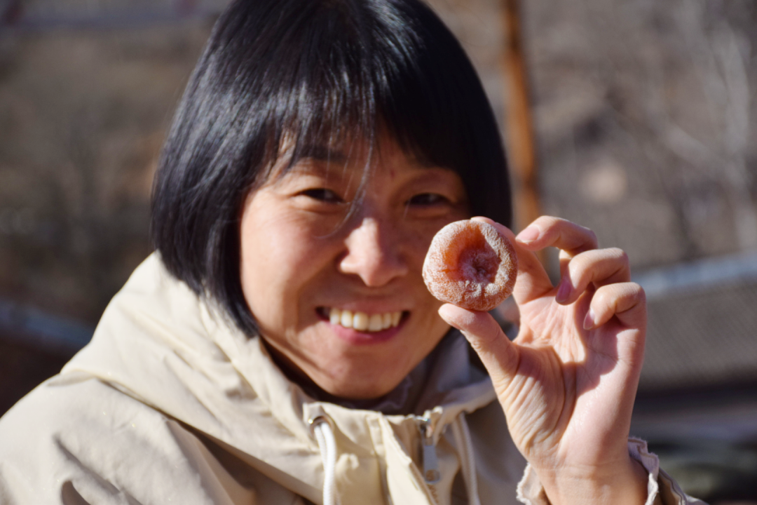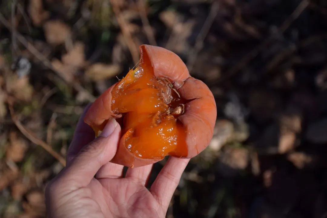 今年,柿子迎来好年景,每棵柿子树都硕果累累。不过果子多了,个头就不那么大了,这些几乎野生的柿子树,大家也不会给它疏花疏果。直播时,又了解到,摘柿子要选在立冬前后有其背后的道理:此时的柿子早熟的已经变软掉落,剩下的大部分是成熟度比较高,但是还有一定硬度的。这样,师傅们就能用带着钩子的长杆勾住柿子的枝条,摇晃树枝让柿子掉在地上,但不会摔烂,同时也便于后续削皮。那天我捡了一个软透的柿子尝尝味道,几乎是吸进嘴里的,清润极了,像喝了一口山泉水,后味有微微涩感。后来看到掉落在树下的柿子好可惜,忍不住又吃了一个。应季又自然成熟的柿子的味道,让人久久回味,至今难忘。最近看到好多文章在说,今年冬天不冷,人的收藏不够,寒包火。我想,这不刚好柿子就能发挥作用了嘛——其味甘而气平,性涩而能收,实在是天地之间自有的大平衡。冬天吃自然成熟的柿子,跟着自然的节奏走,一切都是最好的安排。