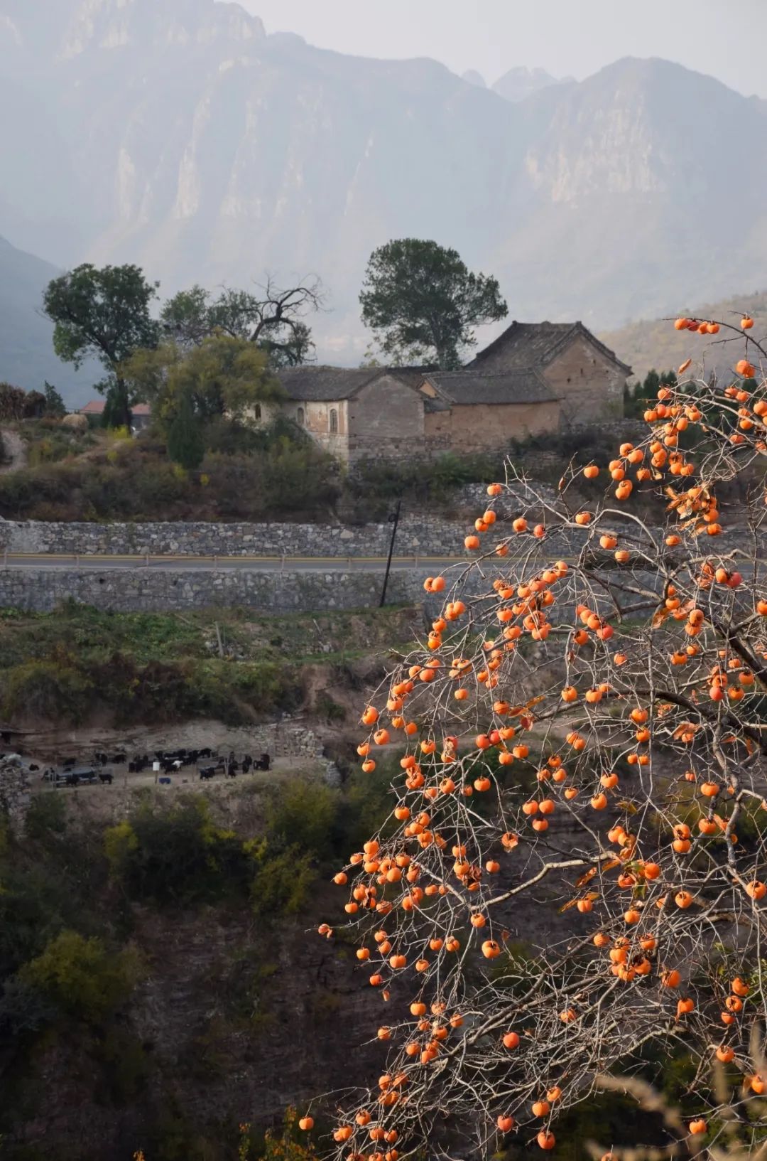 春天百花次第盛开,夏天绿意葱荣,秋天层林尽染,冬天草木凋零,几乎所有的植物都把能量收藏于树干和根系中。如果再细致体会,会发现,每一个节气的物候都有差别,立冬前后刮了一场风,大风过后,气温便又冷了一分,而小雪节气,太行山真的飘起了雪花。各种植物,对山里的气候早已非常熟识,它们跟着天地的节奏开花、长叶、结果、落叶。让人想到《黄帝内经·素问·四气调神大论》中的一段话:“夫四时阴阳者,万物之根本也,所以圣人春夏养阳,秋冬养阴,以从其根;故与万物沉浮于生长之门……”秋末冬初的太行山,满山黄叶即将进入尾声。在春夏秋都不起眼的柿子树,此时成了山坡上的“显眼包”,一树又一树满挂“红灯笼”的柿子树,是此时最美的风景。