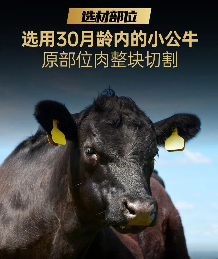 30 月龄内小公牛,先放养再谷物精养,脂肪像雪花一样均匀分布。煎的时候 “滋滋” 冒油,外皮焦香,内里嫩到爆汁,咬下去满嘴奶香味香到舔盘!