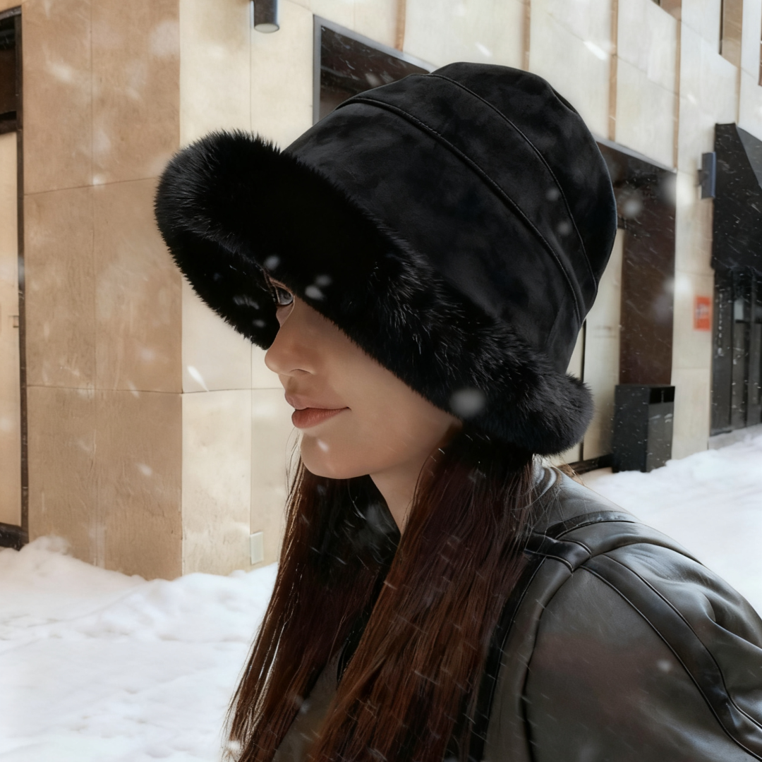 它的内里是厚实的羊羔绒,外面是防风的麂皮绒,任凭外面狂风呼啸,头部依然暖洋洋。