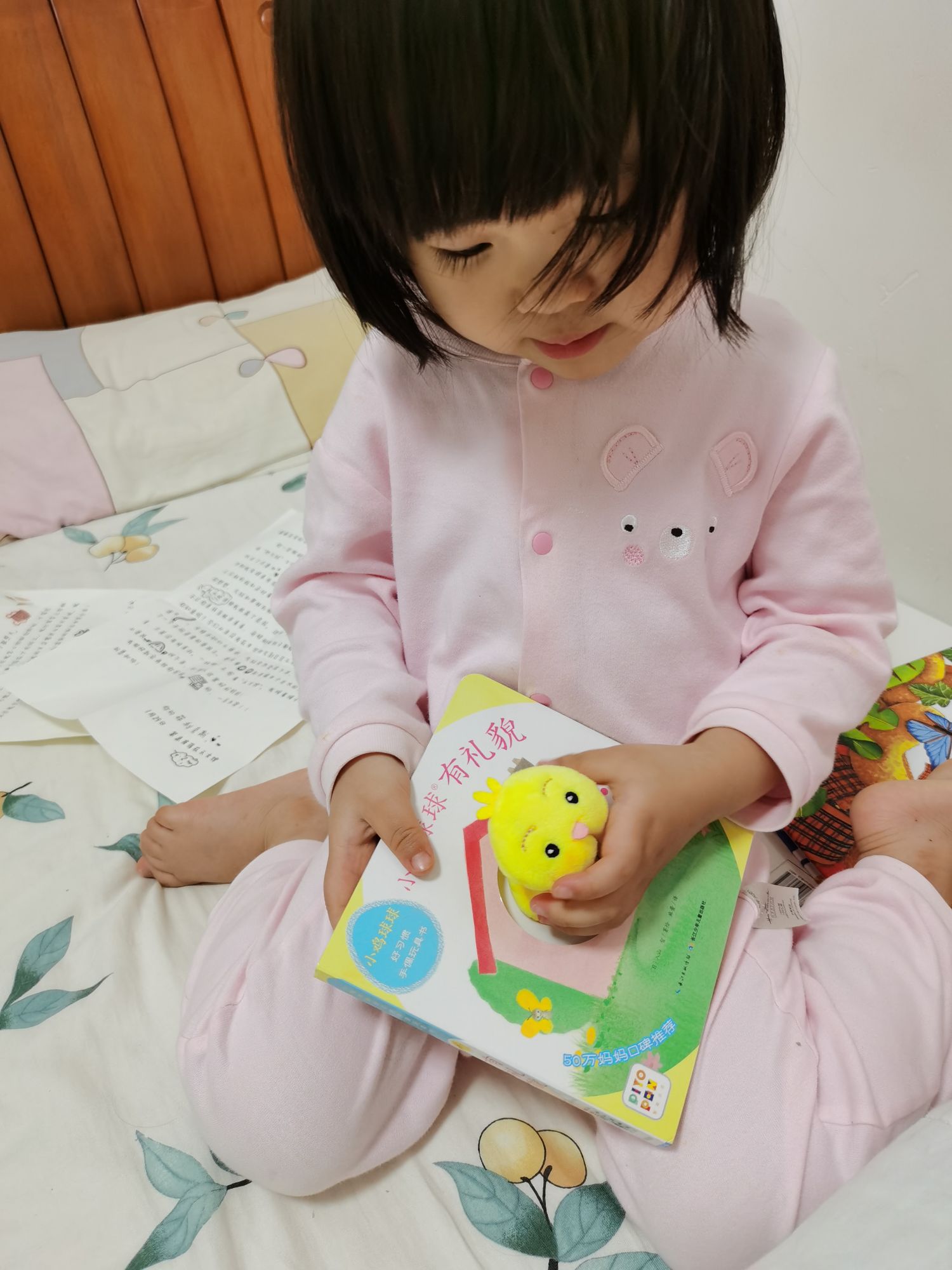 还拿起绘本将眼睛露出来让我猜猜她是谁?