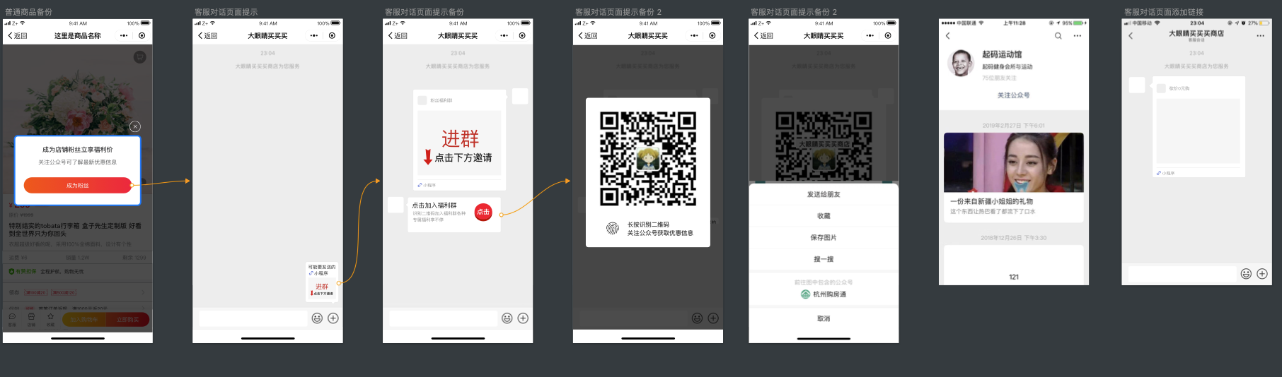 3、关注流程(以让利涨粉为例):用户在商详点击成为粉丝后,会进入公众号文章(文章为系统自动创建),在文章内长按识别二维码,可关注公众号,关注后会自动推送用户之前访问的页面。