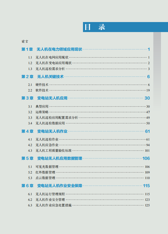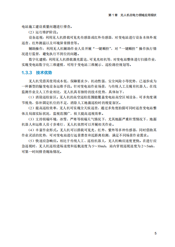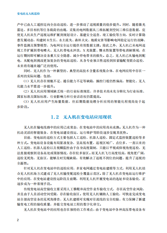 本书内容紧跟技术发展趋势,重点介绍了变电站无人机巡检技术的应用。全书共分8章,包括无人机在电力领域应用现状、无人机关键技术、变电站无人机应用、无人机巡检作业、变电站无人机应用数据管理、变电站无人机作业安全保障、无人机故障诊断排除与维护保养、无人机应用前景展望及附录。
