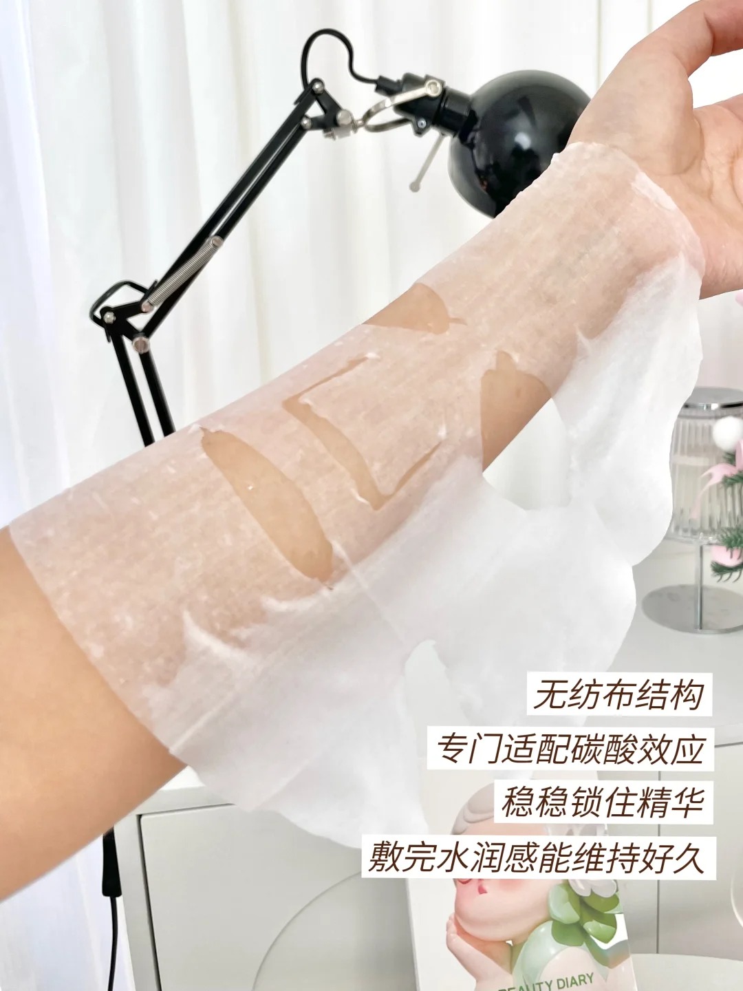 无纺布结构专门适配碳酸效应,厚度和孔径刚好锁住精华,敷完水润感能维持好久