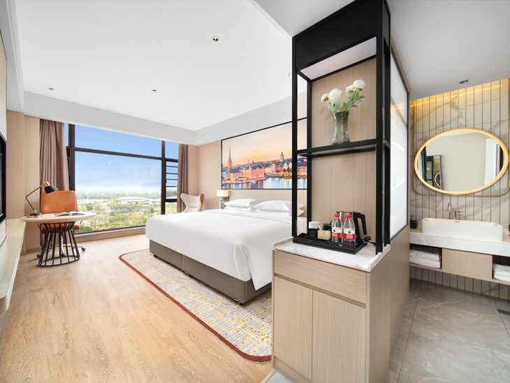 一进酒店大堂,就被它的高端气质吸引了!水晶吊灯、大理石地板、欧式风格的装饰,处处彰显着奢华与品味。房间宽敞明亮,落地窗设计让阳光洒满整个房间,视野超棒!