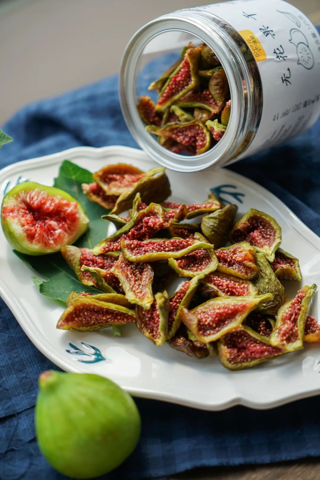 吃过新鲜无花果,极少人吃过无花果干,这也是公认干的比新鲜果还更好吃的水果,制成果干很好的锁住了无花果的营养成份,里面含有丰富的花青素和多酶,药食俱佳。