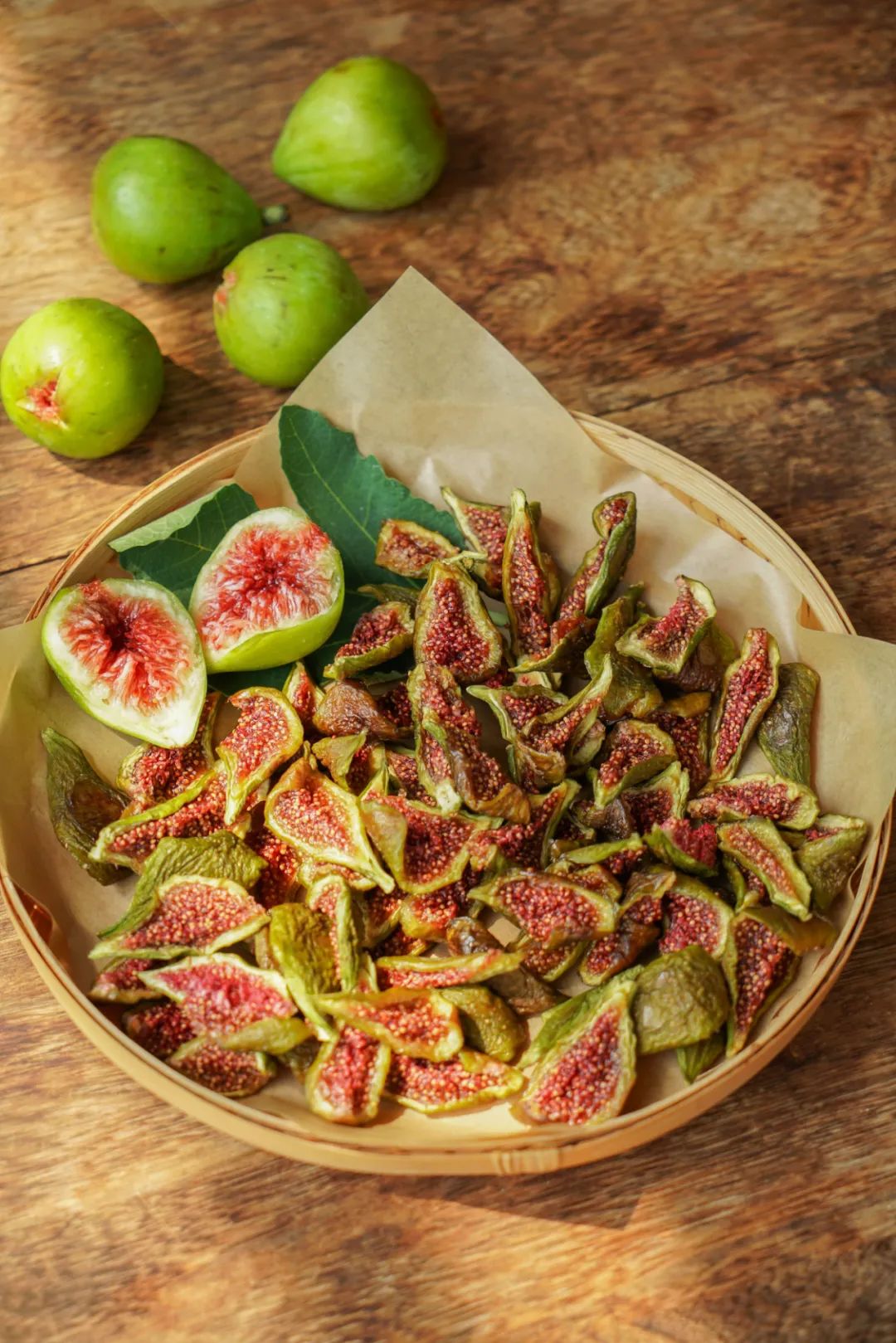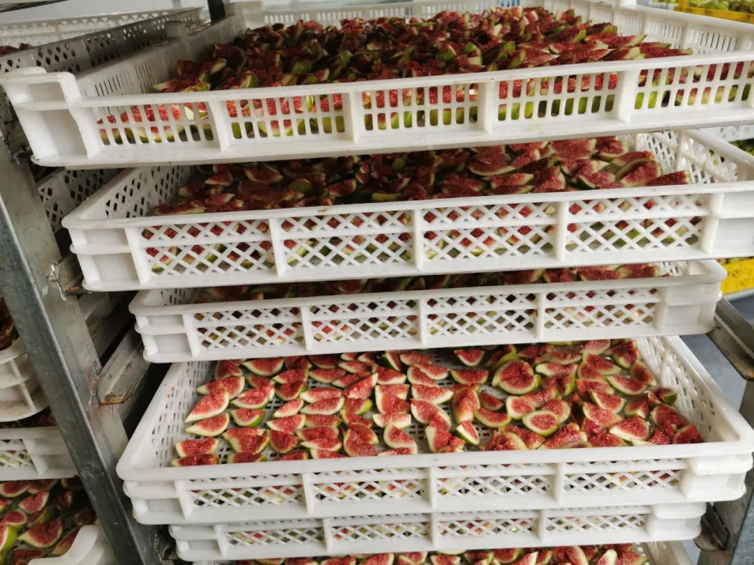 成熟的无花果采摘下来,要先剔除坏果、残果和其他杂质。清洗干净后,切除果柄,再分切成4-6小块,这样能加大果肉的干燥面,节约干燥时间,减少果干的营养和口感损耗。