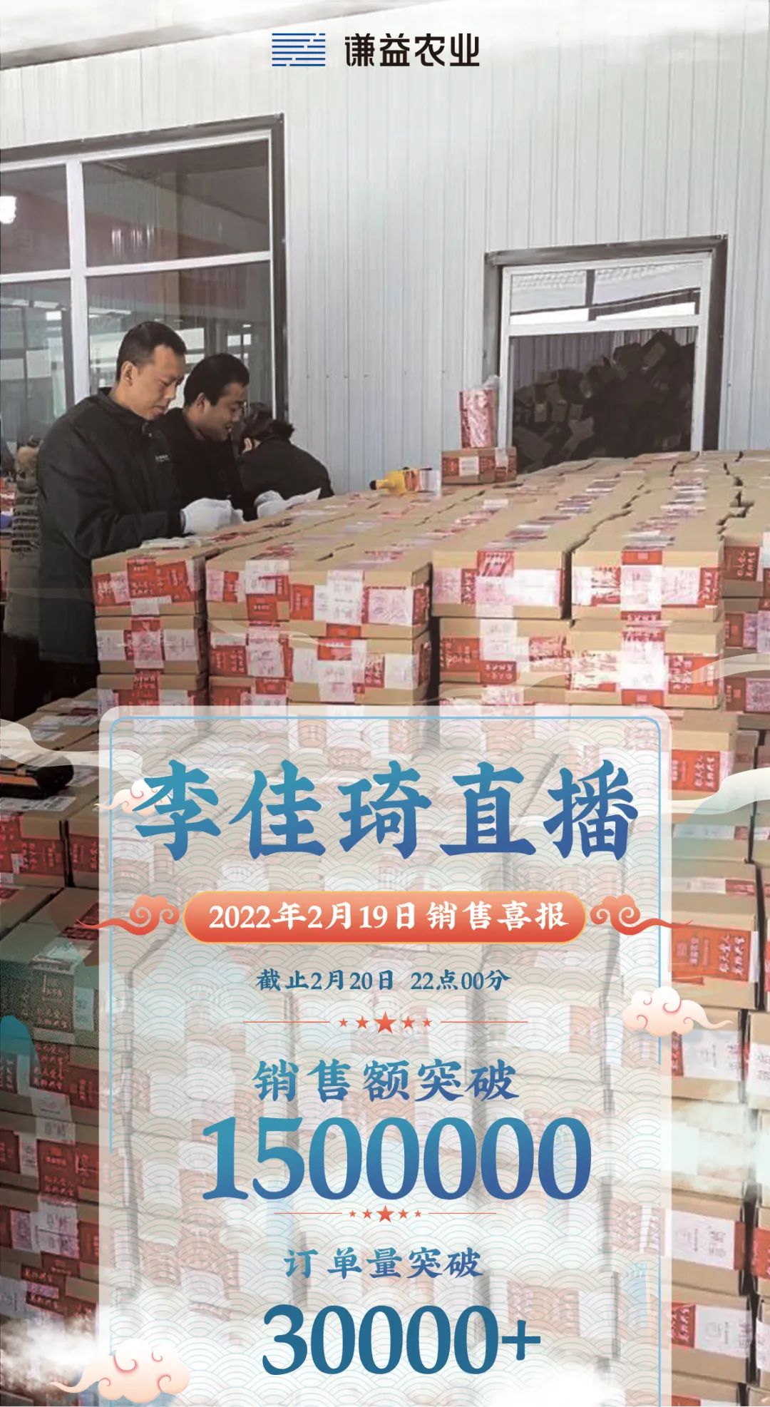 2022年2月19日,谦益的压塌楼小米第二次被李佳琦直播间选中了,山西基地负责人玲子姐总揽全程。
